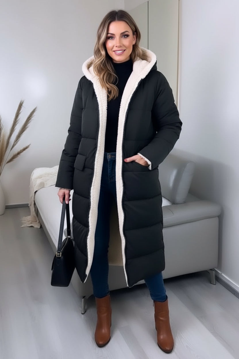 Met deze lange gewatteerde jas trotseer je elke winterdag zonder rillingen. De zachte fleecevoering houdt je heerlijk warm, zelfs als de temperatuur daalt. Geen gedoe met extra lagen, gewoon genieten van de winter.